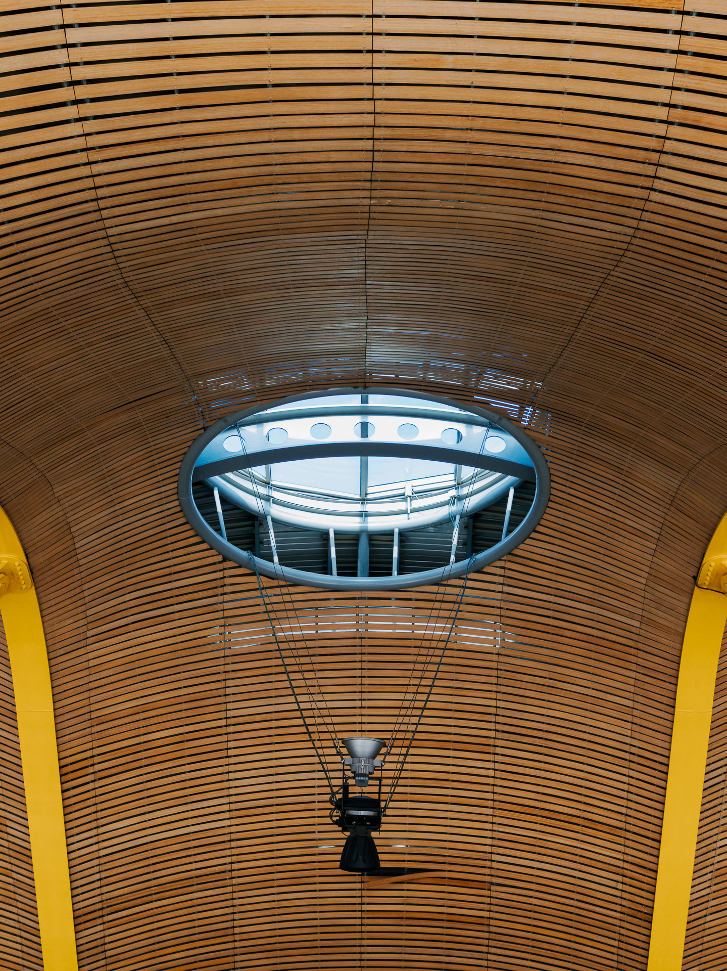 Inaugurada en 2006, la terminal destaca por su icónica cubierta ondulada de bambú y acero, sostenida por columnas de colores que guían al viajero visualmente por el edificio. Su diseño modular, la entrada de luz tamizada y la continuidad entre zonas interiores y exteriores refuerzan la sensación de fluidez y orientación intuitiva.